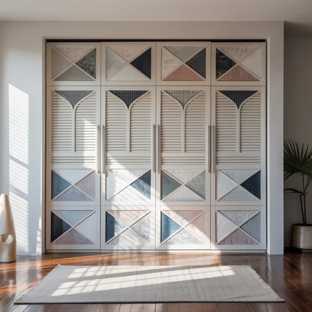 Who says wardrobes need to be boring? Patterned shutters transform storage into art.