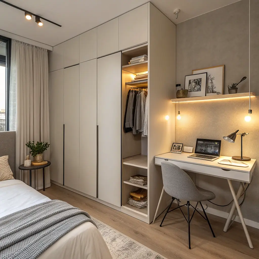 Been there, done that, got the cramped room to prove it! The good news? Smart wardrobe-study combos are here to save your sanity (and your square footage).