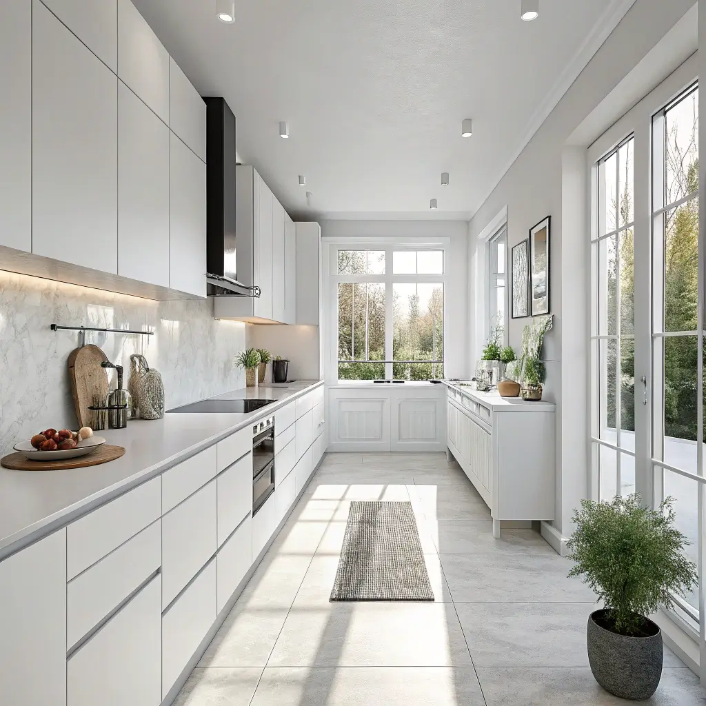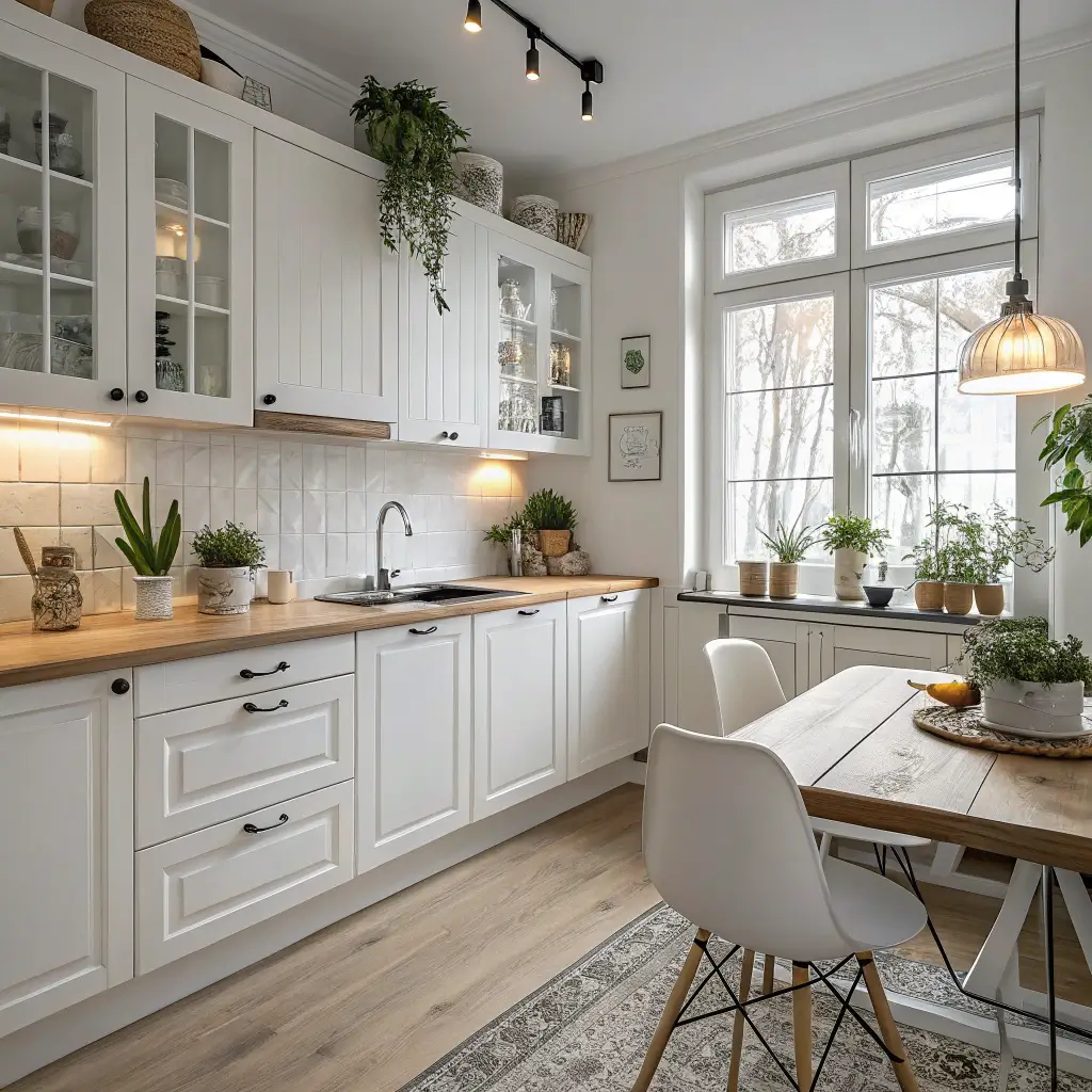 White Kitchen with Green Plant Accents