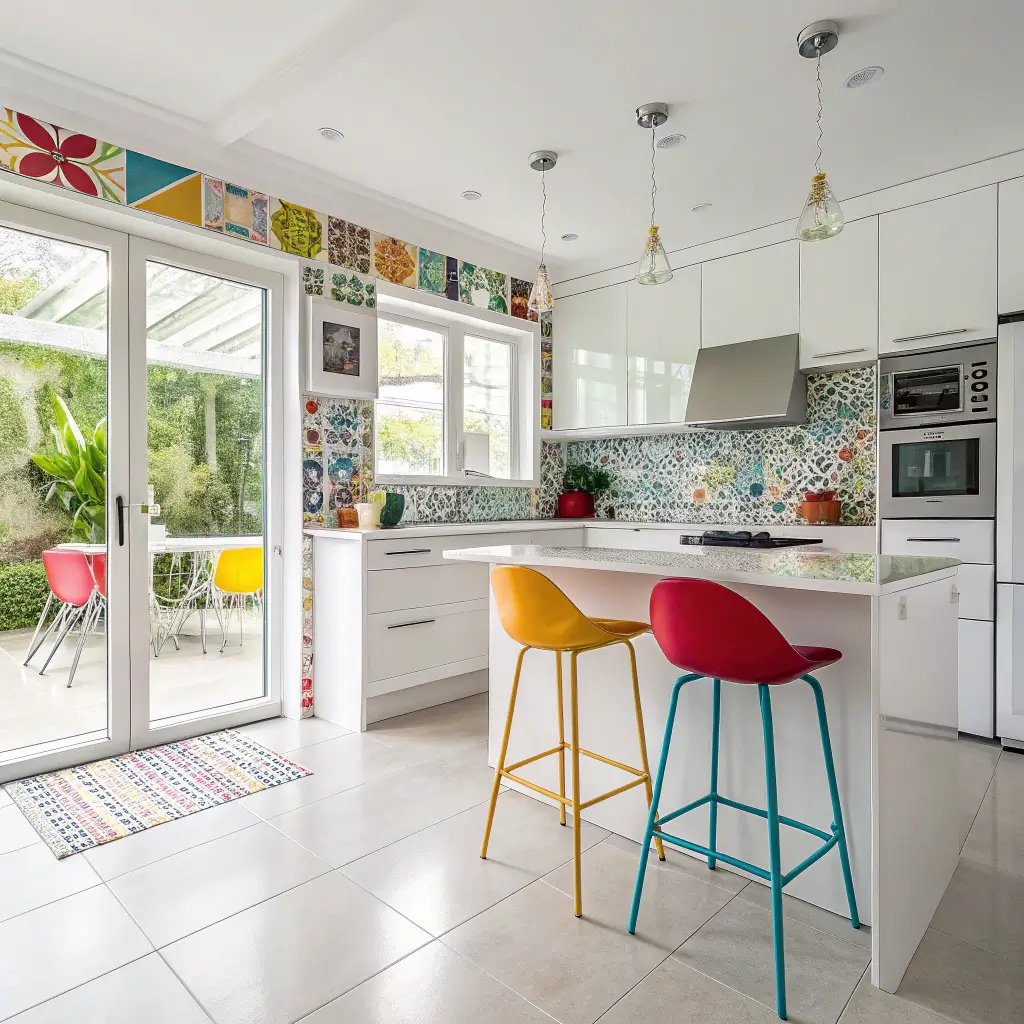 White Kitchen with Bold Accent Colors