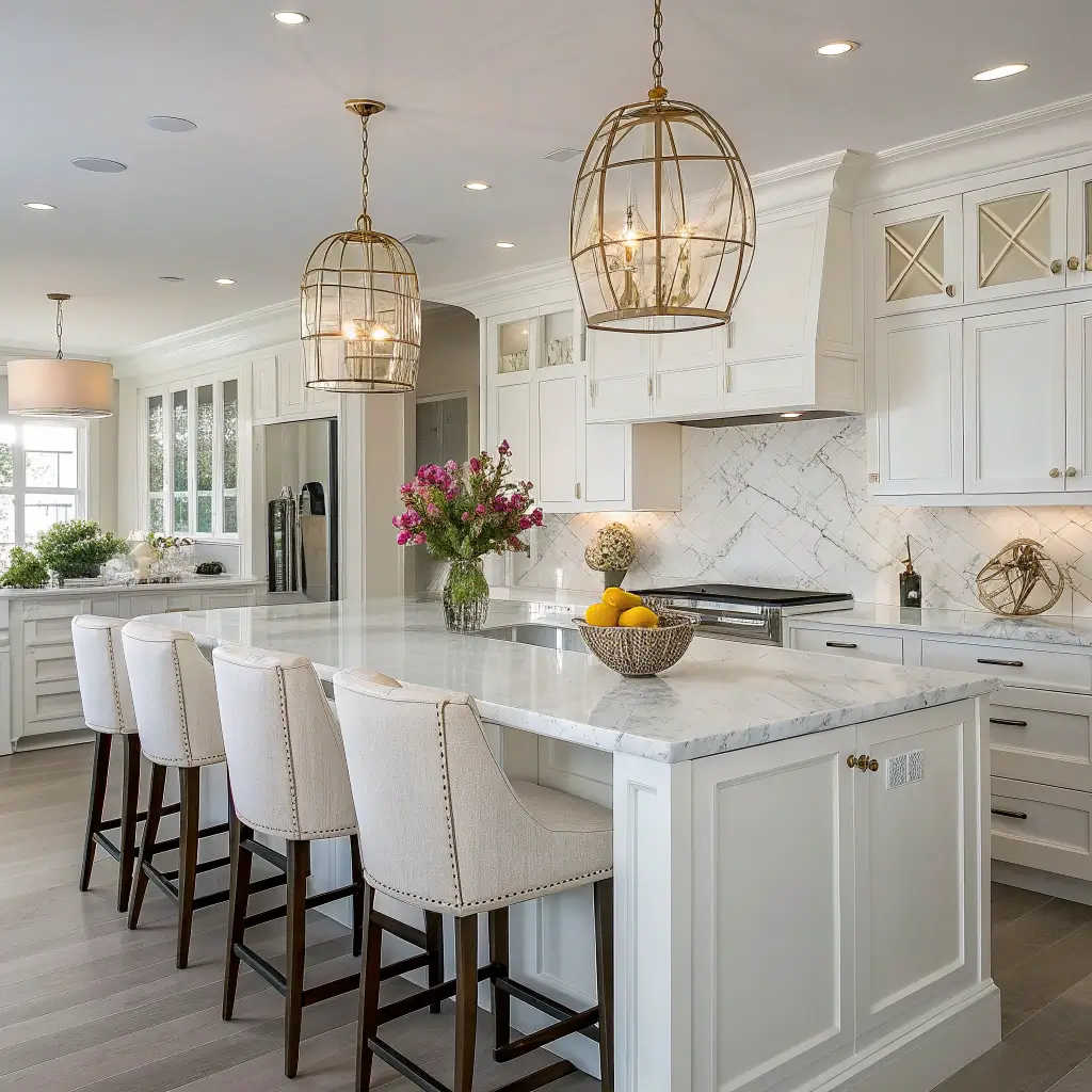 Luxury White Kitchen with Marble Countertops