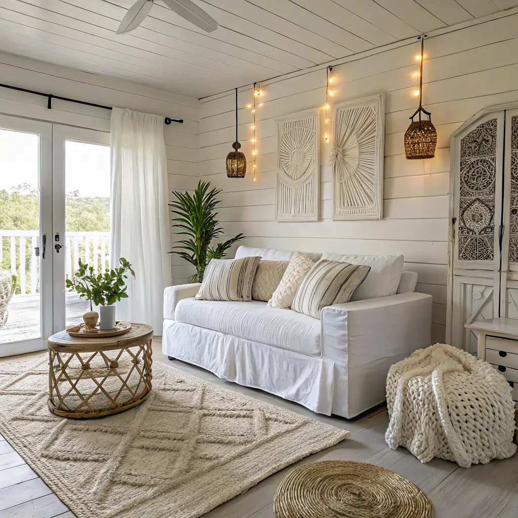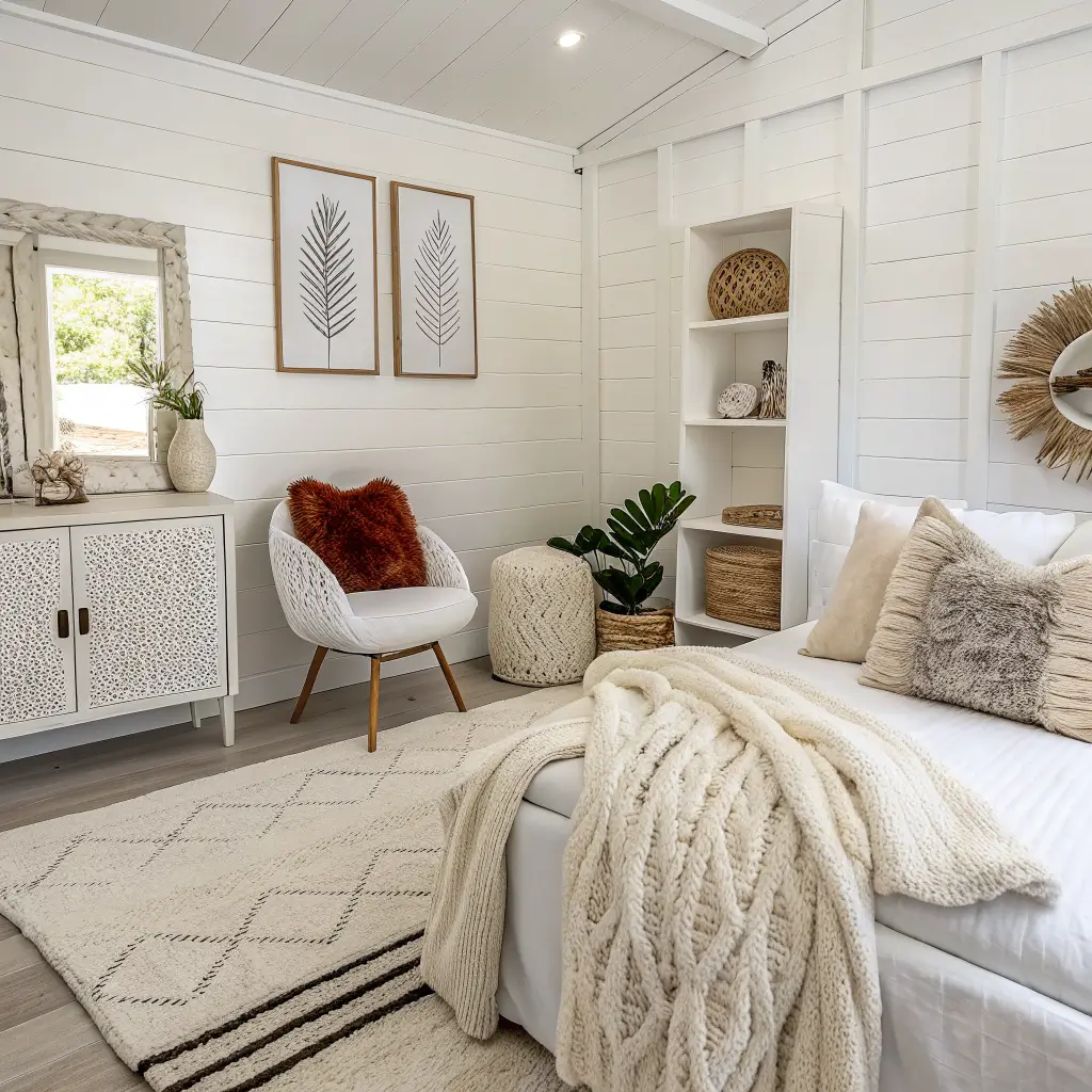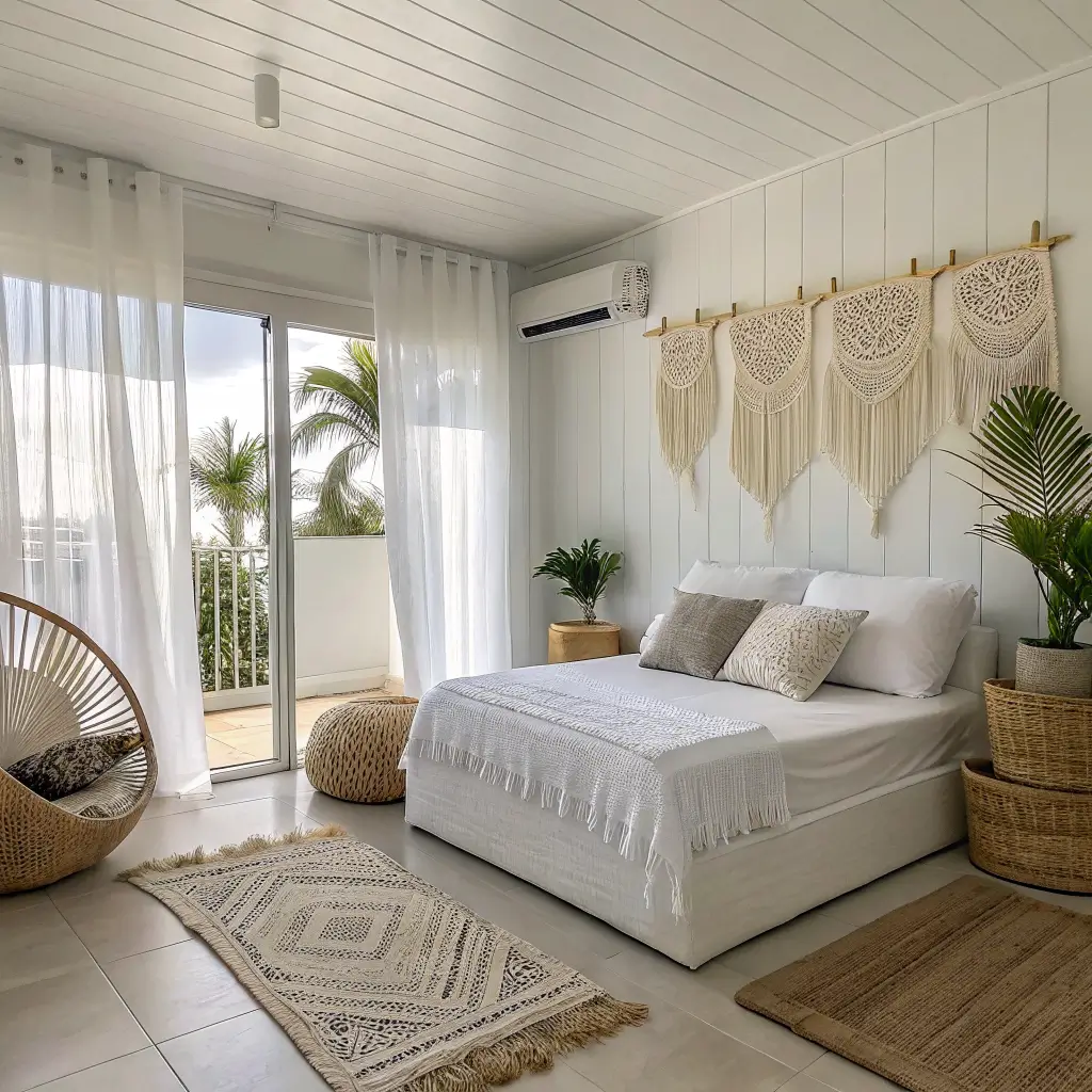 Now we’re talking! White boho is where you get to break all those minimalist rules and have some fun. This style basically gives you permission to go wild with textures while keeping that white base that ties everything together.