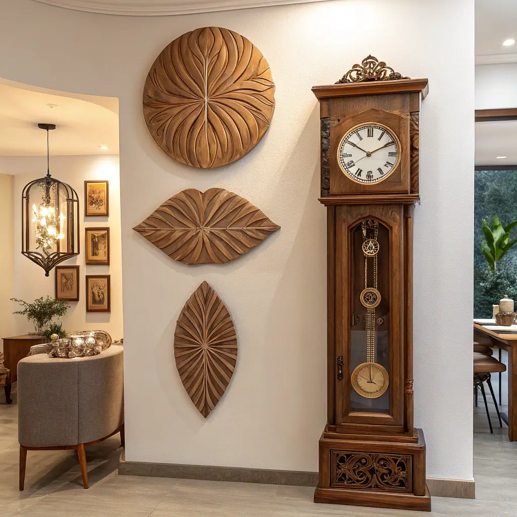 Wooden sculptures take this concept even further. Think abstract pieces, carved animals, or geometric designs that add dimension without overwhelming the space. The texture of wood softens modern interiors while adding organic appeal you can’t get from metal or plastic alternatives.
