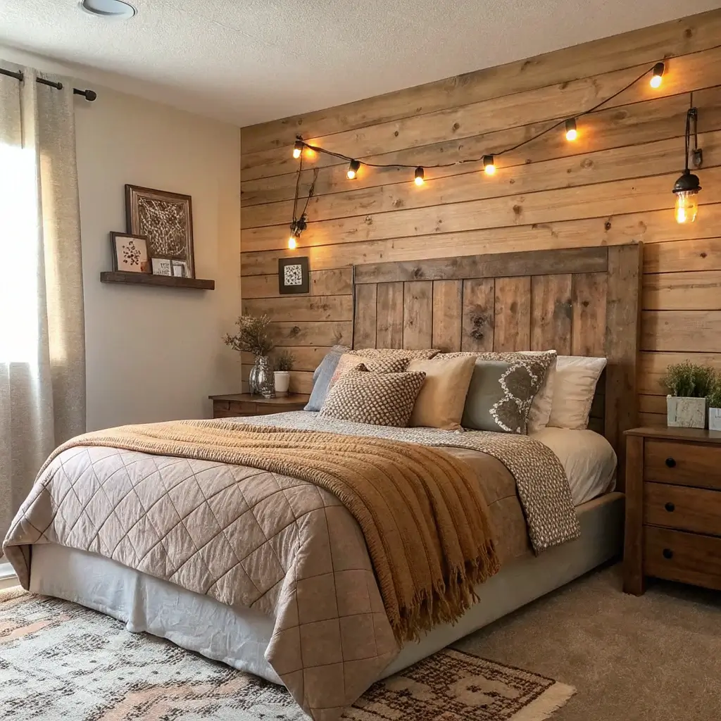Who needs a traditional headboard when you can create something way cooler with wood? Wall-mounted wooden headboards save space and create focal points that traditional beds just can’t match.